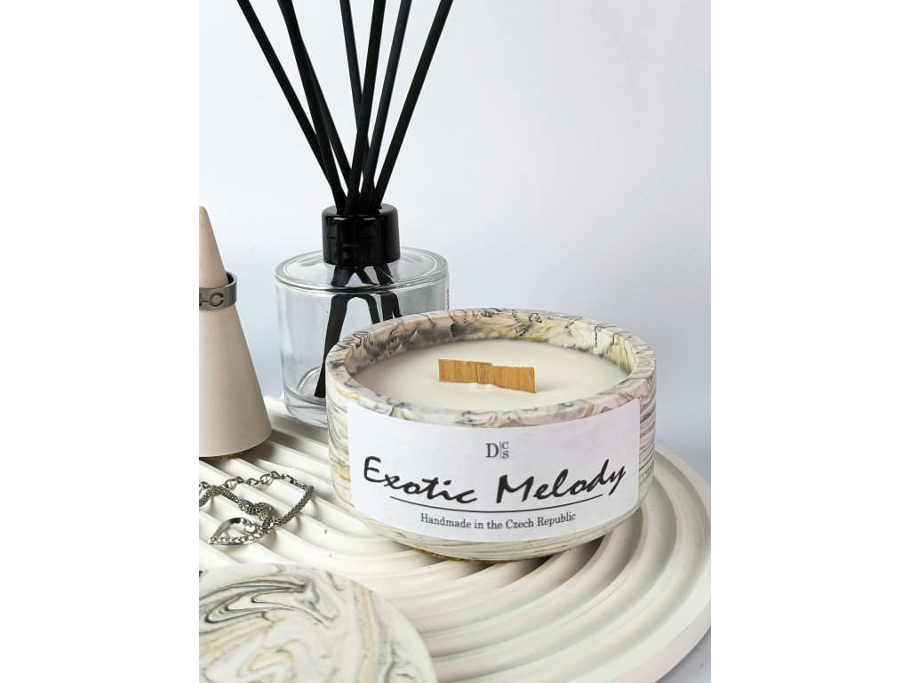 Tato svůdná vůně spojuje sladkou šťávu fíků s nádechem jasmínu, vytvářející tak jedinečnou atmosféru klidu a elegance. Každý nádech této svíčky je jako procházka po rozkvetlém zahradním labyrintu, kde slunce zlatě září a všechno voní čerstvostí. Vonná svíčka Exotická Melodie vás zavede do okouzlujícího světa přírodního romantismu.