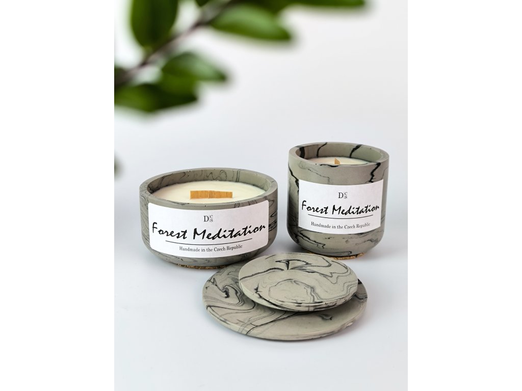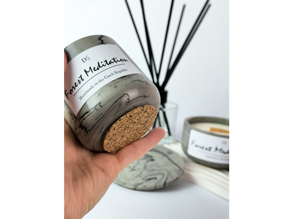 Vonná svíčka Lesní Meditace představuje hřejivý závan lesních tónů. Intenzivní směs dřeva a jemné zeleně vtáhne vás do středu lesního labyrintu, nabízející klid a odpočinek. Ponořte se do atmosféry relaxace a meditace.